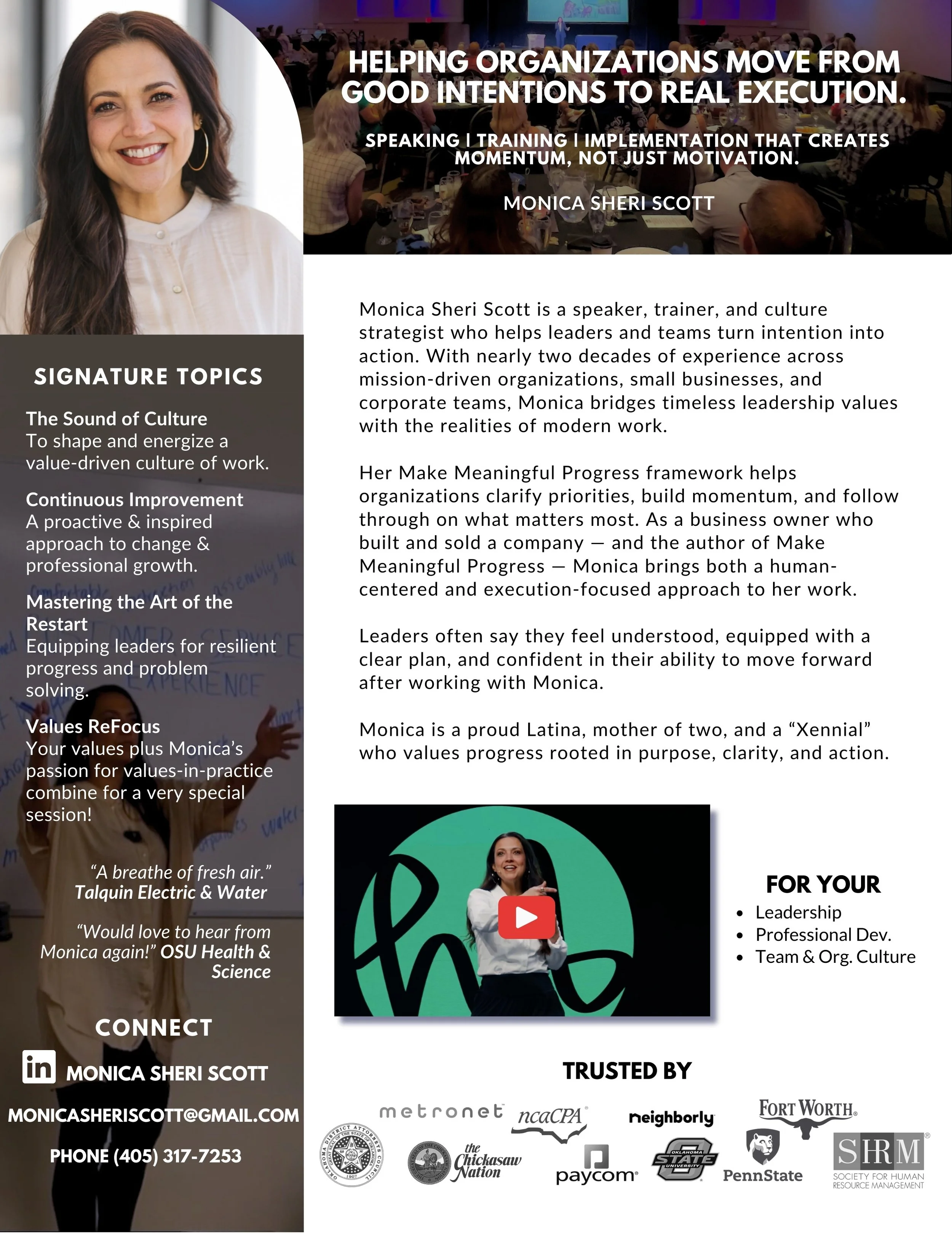 I’m glad you’re here. I’m Monica Sheri Scott, a speaker, trainer, and culture specialist who works with leaders and organizations to make meaningful progress.